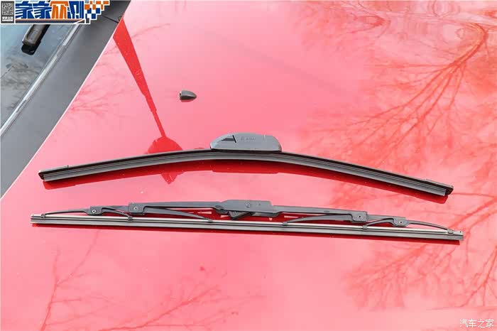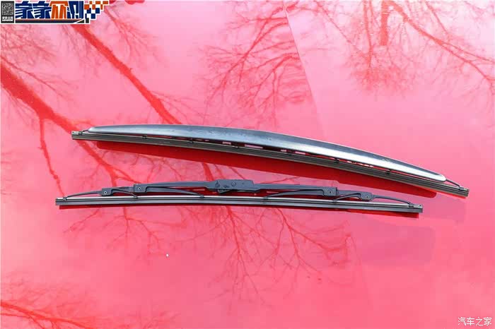 安装副驾雨刷器之前对比一下两个雨刷器的区别。无骨雨刷弯曲度比较大,与风挡贴合的更紧密。