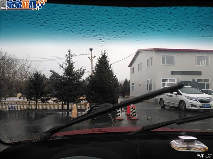 随着温度的升高,外面的雪已经变成了小雨。一路跟车前行,前车溅起的泥水落在风挡上。仍然很轻松的刮干净。一路一直开着雨刷,但是非常安静,没有了之前胶条与玻璃摩擦的声响。经过1个小时的路程,我发现风挡上的雨滴不再是大水点,而是细小的水滴。这是那个P.P.P合成保护膜效果?