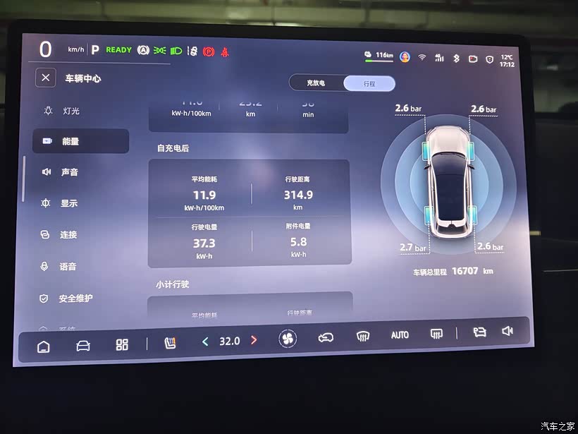 其中附件电量5.8度,主要是开了座椅加热功能,空调全程没有开,主要是觉得升温太慢,不如座椅加热快。再次将车子充满显示充了50.24度,按实际的广西用电价格,0.53元/千瓦时算,换算成公里,每公里成本=(0.53*50.24)/315=0.085元,每公里一毛钱都不到,之前开油车每公里6毛左右,电车用电真是太划算了。之前一个月油费700-800元,现在电费每个月150左右,每个月省下600元左右,电车真的太香了。