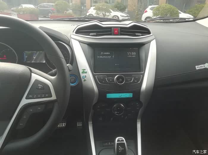 内饰方面也比较简单明了,采用对称设计风格整体看着还可以。最喜欢的就是螺旋式的空调出风口天空的颜色和新能源主题比较搭。