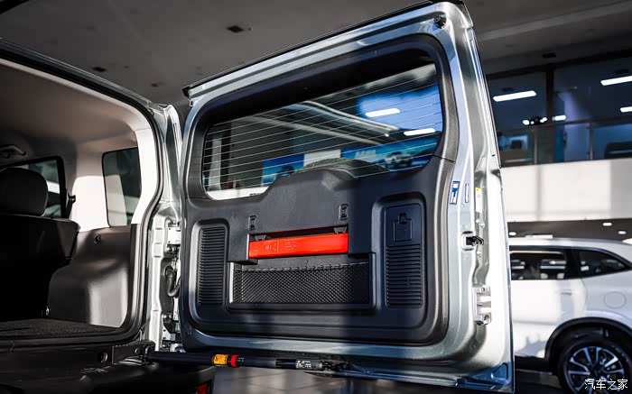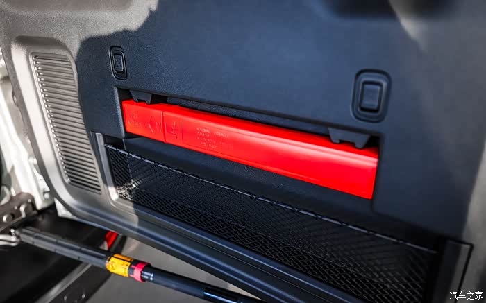 后尾门采用了硬派车型常见的侧开方式,在门板上这台车提供了2个挂钩,以及一个网袋用来收纳外挂一些零碎物品。