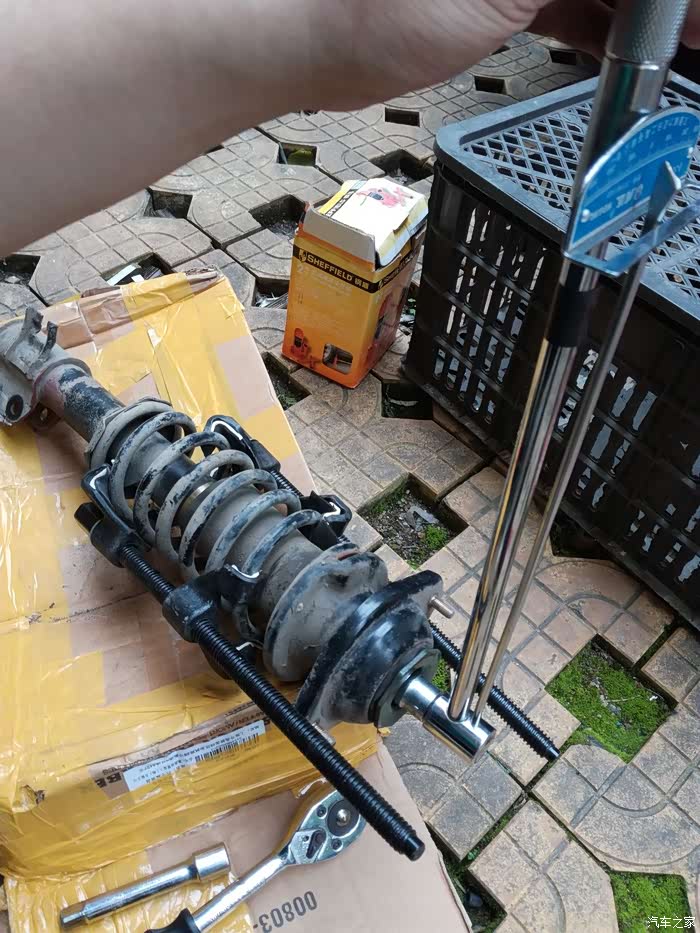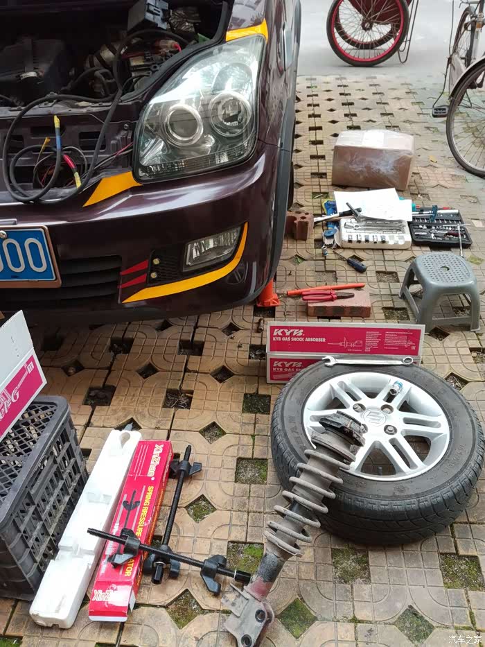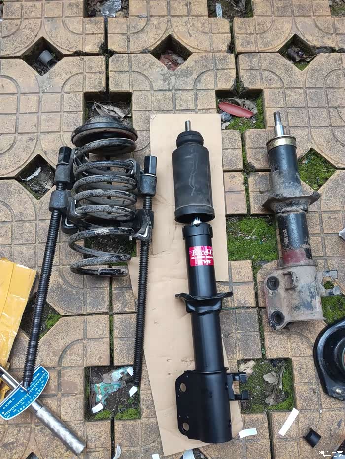 。还有很多东西要跟大家分享呢。因为这是自己单人第一次操作,也没有升降机,全靠自己的土工具土办法,拆装的时候还是有很多细节没有悟出来,换第二支的时候就有经验了,过程很快,也有意做了记录,包括压簧时候的技巧,更加详尽的分解动作,甚至考虑了后期的四轮定位。好了,是不是有些期待“中2”了?