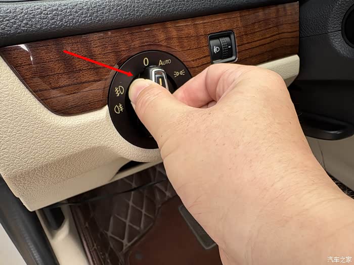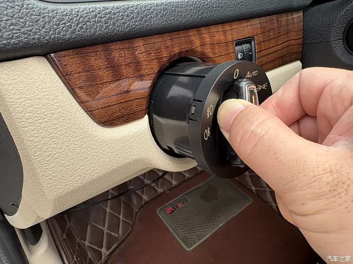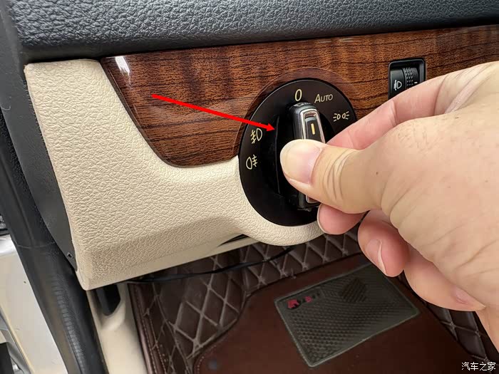 按下开关的拨片后,然后朝“Auto"挡位旋转,旋转的时候一定要按住开关不能松,这样就可以将固定卡扣收起,大灯开关模块就会从中控台上松脱。
