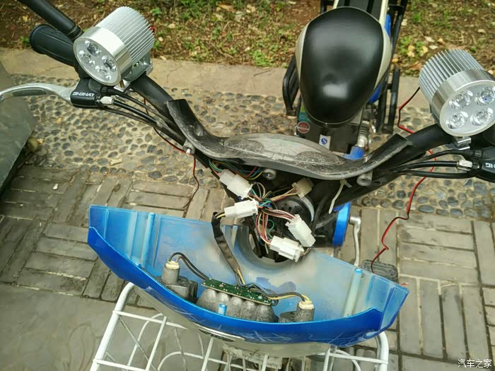 前不久,刚刚把汽车头灯改了双光透镜,感觉还不过瘾,天天骑电动车上下班的我,一直觉得电瓶车的灯几乎跟没有一样。所以现在很多人买电动车时都会让卖家在车篮下给自己加装一个照明灯。据说加装一个灯要三四十块钱。于是乎,手贱宝了一下,普通灯的价格四个还不到50块,便宜得多啊。索性买来四个自己安装,我就不信这能有多难!这就是我的小毛驴,它的主要任务就是每天载我上下班,兼顾在社区里生活所需,用的还是很苦的。今年武汉内涝,还泡了水,换了个控制器就好了。前面这个头灯跟没有一样。今天的主角登场,某宝入手的高亮LED+吕夹,卖家赠送安装螺钉和扎线绳。正面,每个灯四个灯珠。背面,带有电线,很细!下面开始安装首先,将灯体...