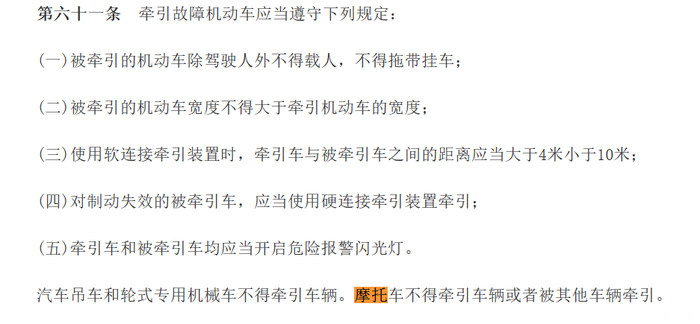 摩托改装牵引拖拽也是不可以的