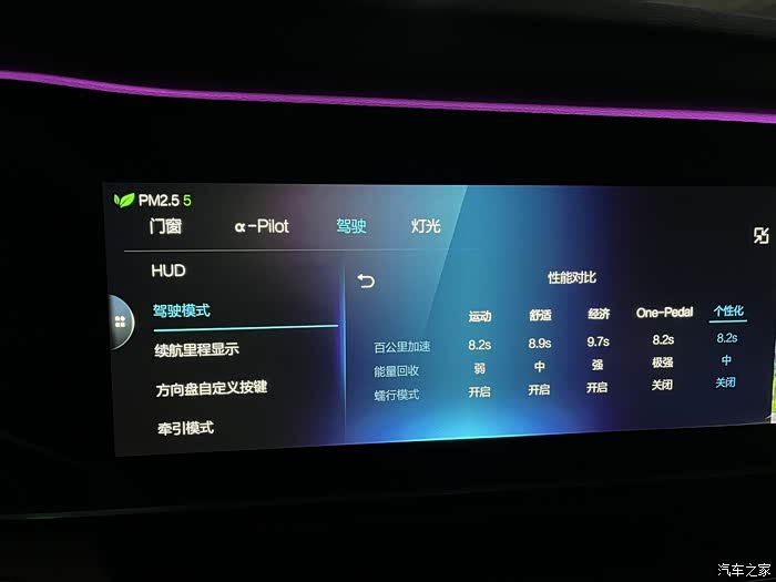 首先,谈谈单踏板模式。新能源品牌车辆我开过不少,极狐的单踏板模式可以说是调教的比较好的,让习惯了燃油车的车主能够无缝过渡。虽然中控台没有为单踏板模式设置快捷键,但只需在车辆管理的驾驶模式模块中找到并选择"one-pedal"模式,即可轻松切换。在这种模式下,动能回收功能极为强大,可以通过油门踏板控制车速,减少对刹车的依赖,同时还能提升车辆的续航能力。