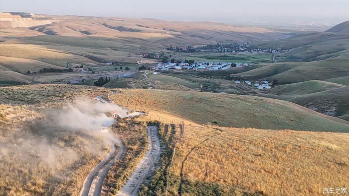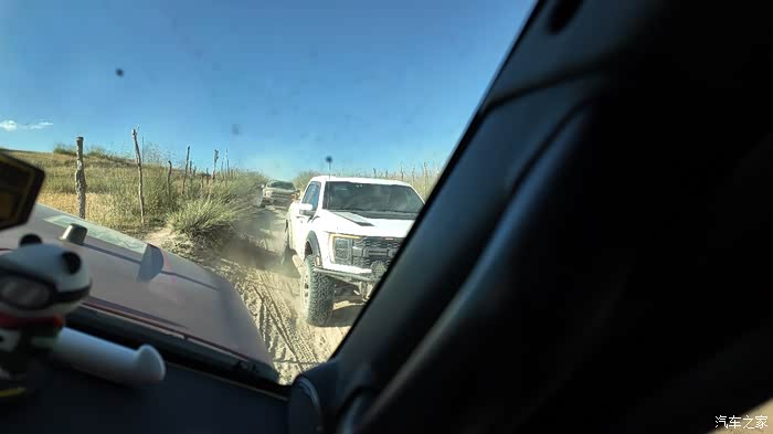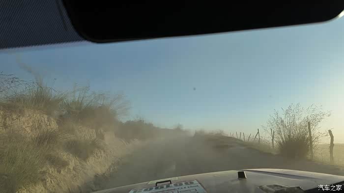 前半段基本就是大土路,土到什么地步呢?就是你前边有个车跑,你在后边能见度估计不够二米。我从车的后视镜都看不到后车,全是土。