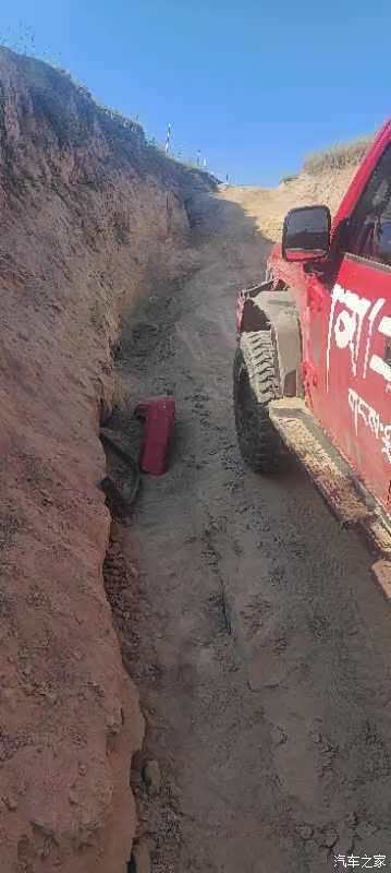 其实轮眉也不是撞掉的,是救援的时候,拉车蹭下去的,没办法,轱辘卡在沟里,方向动不了,只能蹭着墙硬拉。要不说还得是40,到底是硬,试了一下方向和检查了一下轮胎,啥事没有,轮眉就留在这里吧,哈哈,接着走。