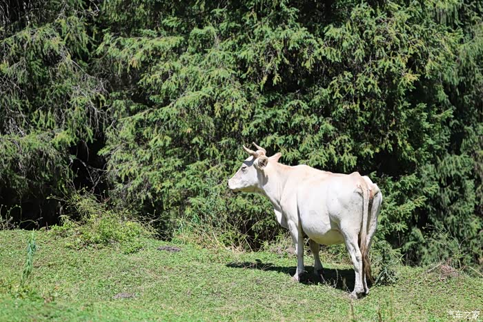 除了牛群和骆驼在路上漫无目的地觅食,就剩一些牧民骑着马儿飞奔,这里的地势,是两千七百多米,越是往上,植物就越是密集。景色优美,道路错综复杂,首先是不肯让车辆通过的牛群,横在道路中央;在此之前,还得涉水好几条小河。七月份的伊赛牧道,只要不下雨,难度就还行,所以我建议后边的车友还是关注天气合理穿越。也不用害怕进来后迷路,这里虽然远离城市,但是来往的越野车特别多,问路和救援什么的都是很方便的。