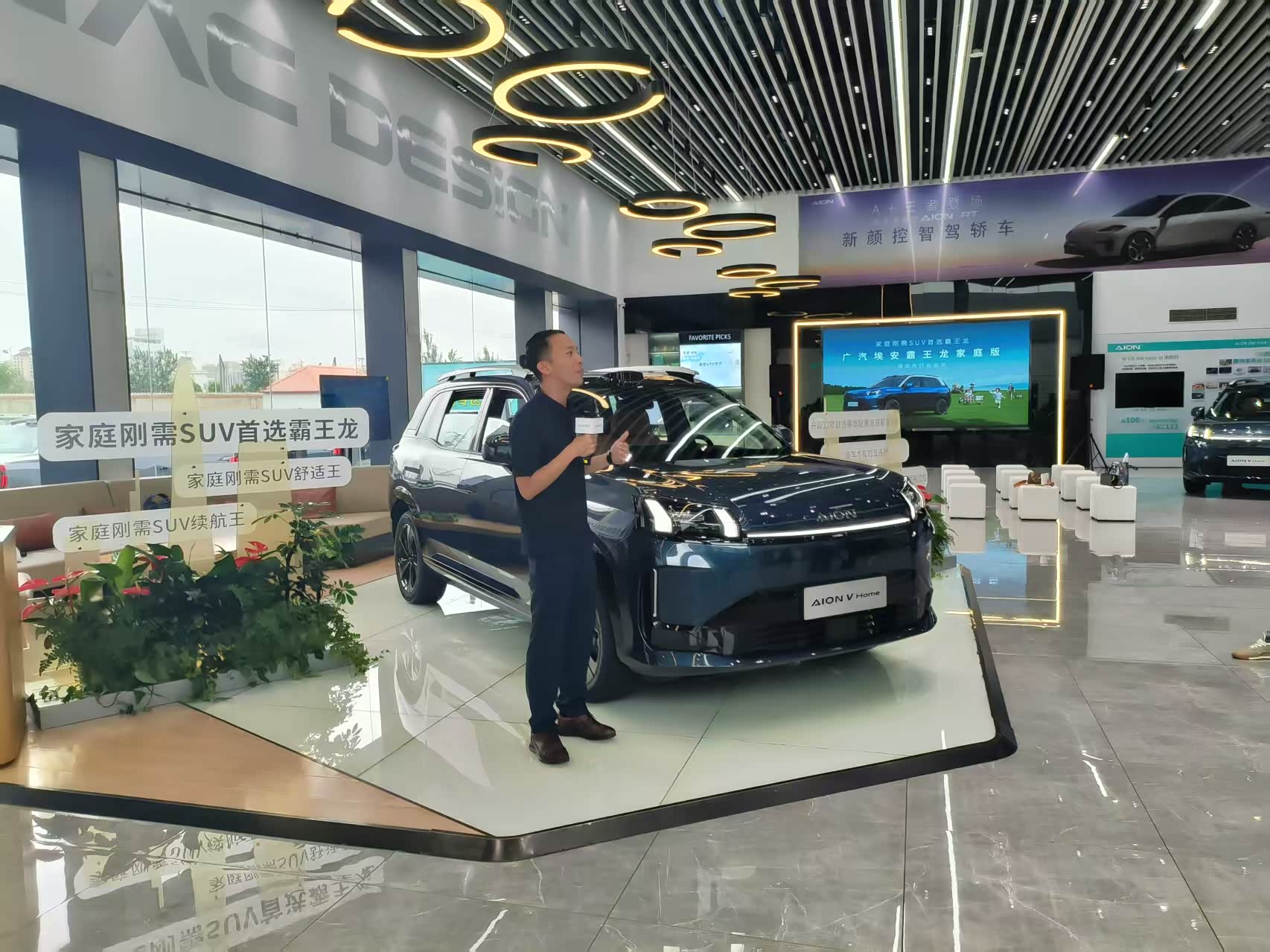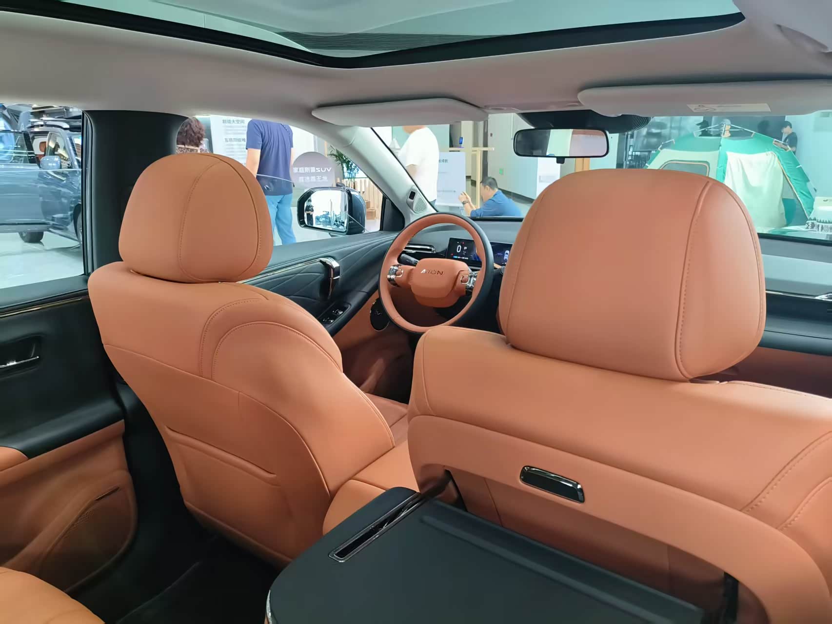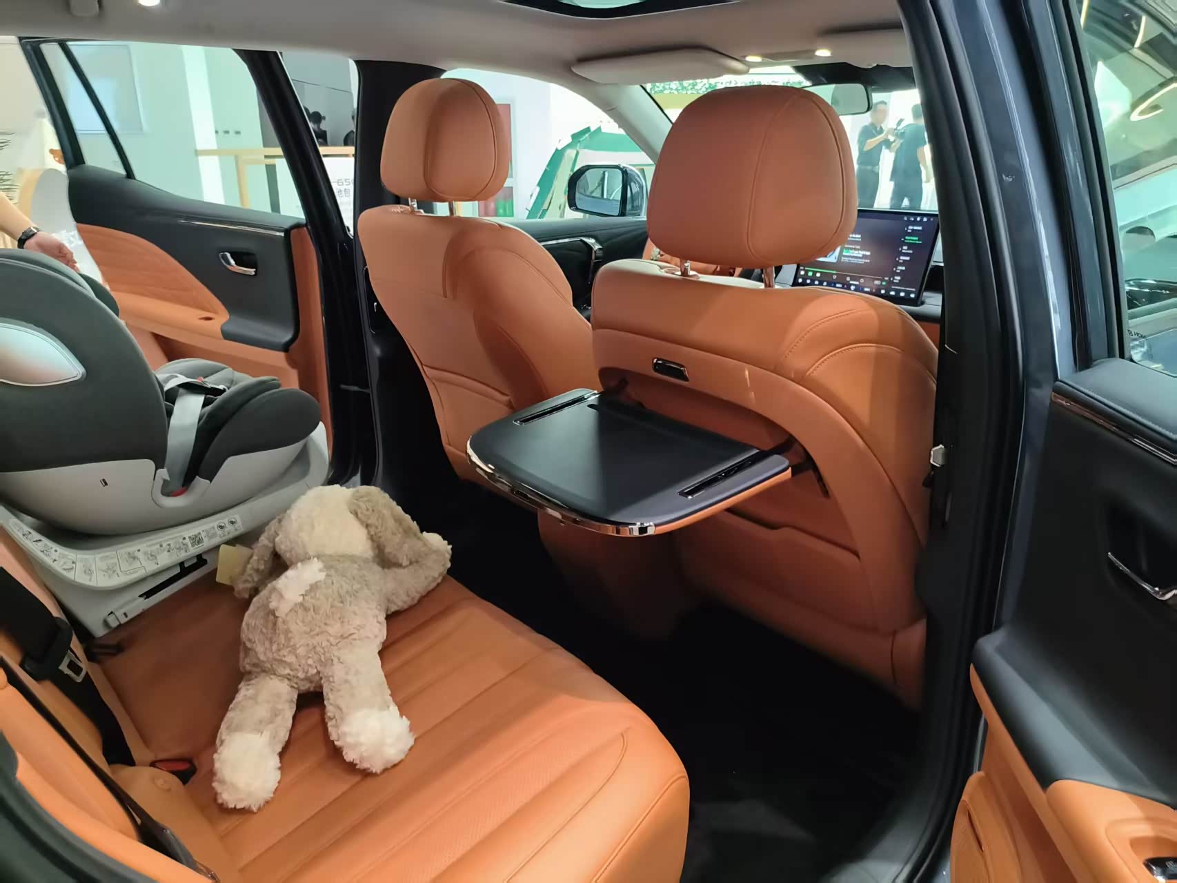 不久,本次活动的主角埃安霸王龙家庭版(AION V Home)出现在我们的视野里,店内的销售人员就带着我们围着新车转了起来,特意重点说的几个特点,比如越级B级空间,主副驾按摩椅,冷冻、冷藏、制热三模式冰箱,豪车级五连杆(广汽 + 保时捷联合调校);75 度电池长续航,3C 快充,V2G逆向放电;激光雷达智驾,全场景泊车,弹匣电池,高强度车身。配置升级这么多,很适合家庭用,刚需SUV 首选呀!