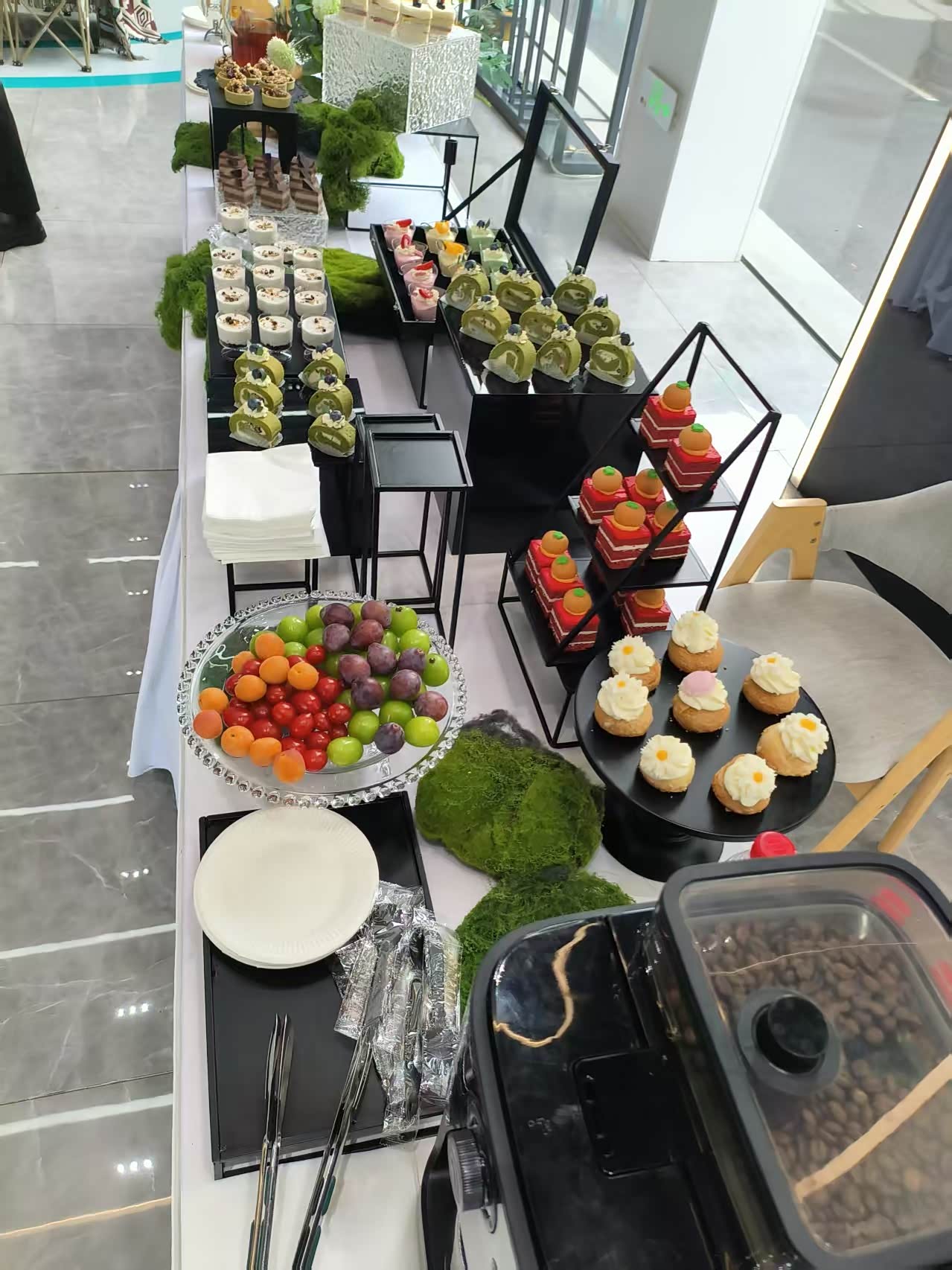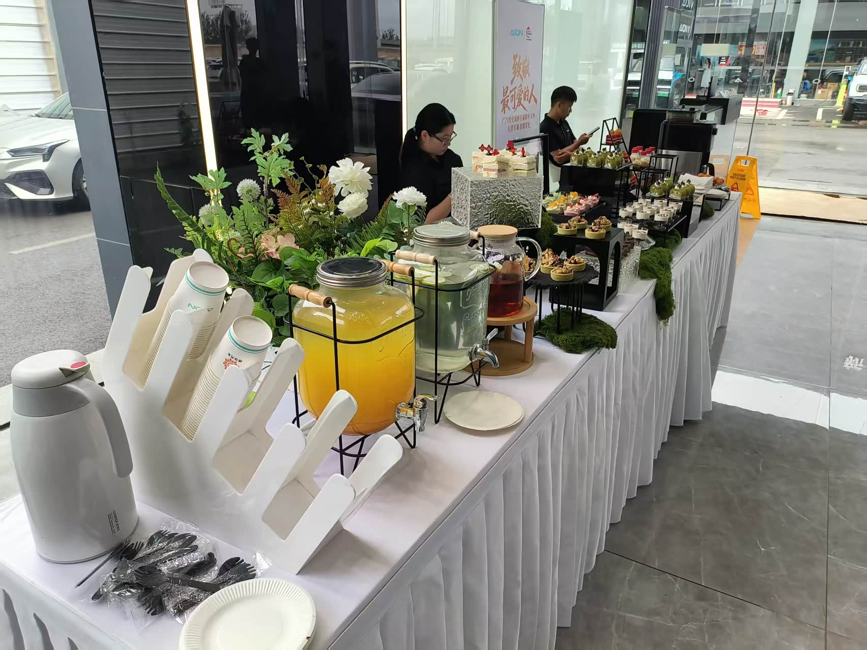 周末,我有幸跟着“埃安津门会”的车友们,一起参加了双街 4S 店组织的新车试驾活动。大家一早就赶到了4S店集合,店里特别贴心,早早就备好了精品茶歇,各式甜品摆得满满当当,还有冷热饮、水果可以选,大家到达后轻松随意的边吃边聊。