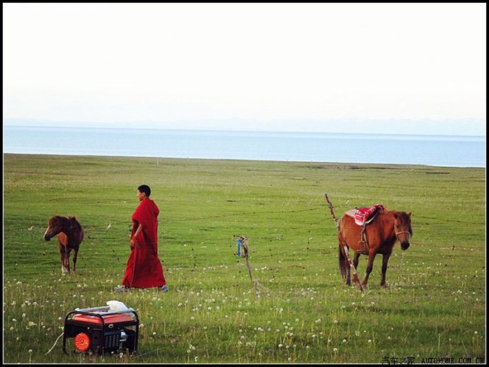 青海湖的水是温温的,兴许是因为白天太阳太大的缘故~~不像藏区其他的湖那么冷冽的感觉