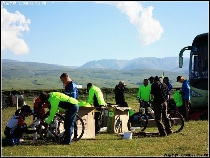 浙江某自行车俱乐部来参加环湖赛的。阔气得很,又是篝火晚会,又是烤羊的~~