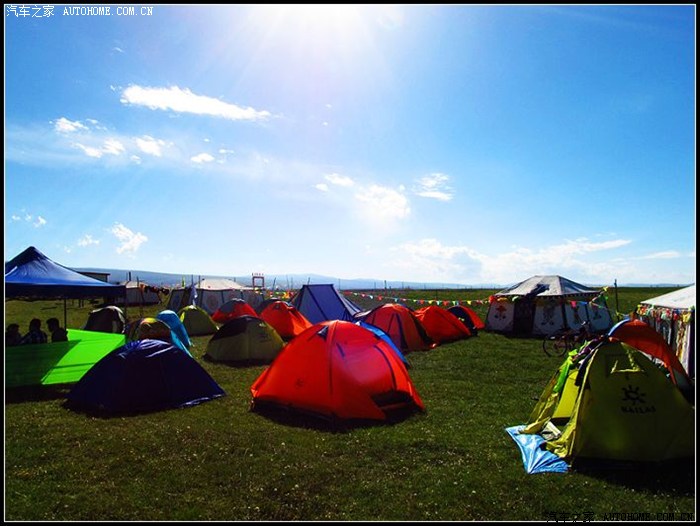 车行不远看到有家,帐篷营地里停了辆旅游大巴,很多自行车,应该是参加环湖赛的,这才安心住下