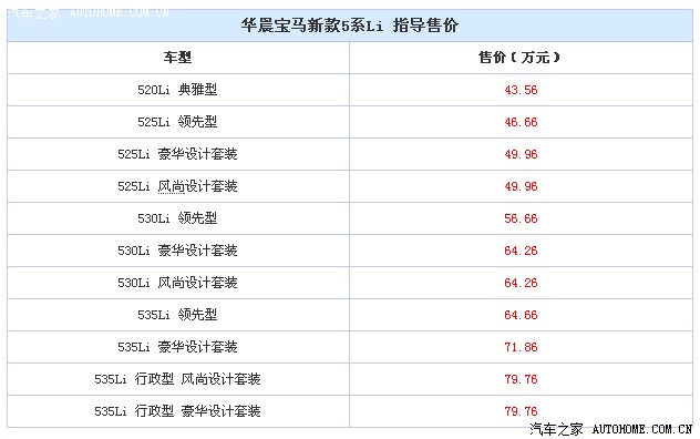 【最新消息】华晨宝马新款5系Li将于9月23日正式上市。国产新款5系Li采用了与海外版车型相同的设计,包括前大灯、保险杠以及雾灯装饰框的设计均有所改变。配置方面,根据之前得到的消息,新款5系Li可能会配备最新的iDrive多媒体触摸控制系统等新配置,并且对车内储物空间进行优化。新款5系Li主要是在眼部做了一个“小手术”。考虑到是改款车型,预计新款5系Li的售价不会与现款车型出入太大。