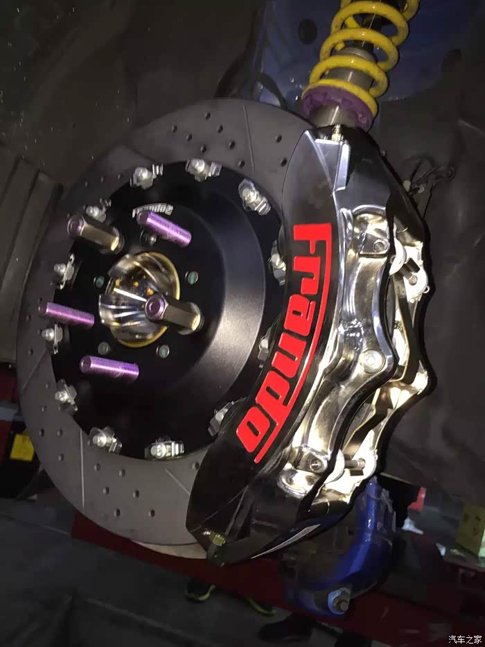 然后么我也懒的折腾,正好台湾的FRANDO公司和我们店签约成为大陆正式的服务商以及授权店家,我也帮他们在M4上进行FRANDO刹车的压力测试,效果还是非常满意的,我们车队的328现在也是用的这个品牌的刹车,和ST价格差不多,但是配置要比ST高一些,ST的缺点就是原厂皮比较垃圾,盘是分体螺丝不是大浮动,这2个在FRANDO上有比较明显的提升,所以性价比还是很高的。测试完成之后我那套刹车被送回台湾进行分析了,正好碰见我又要参加中汽联和改改公社举办的TTAC单圈计时赛。没办法我咬咬牙上了个狠货。。