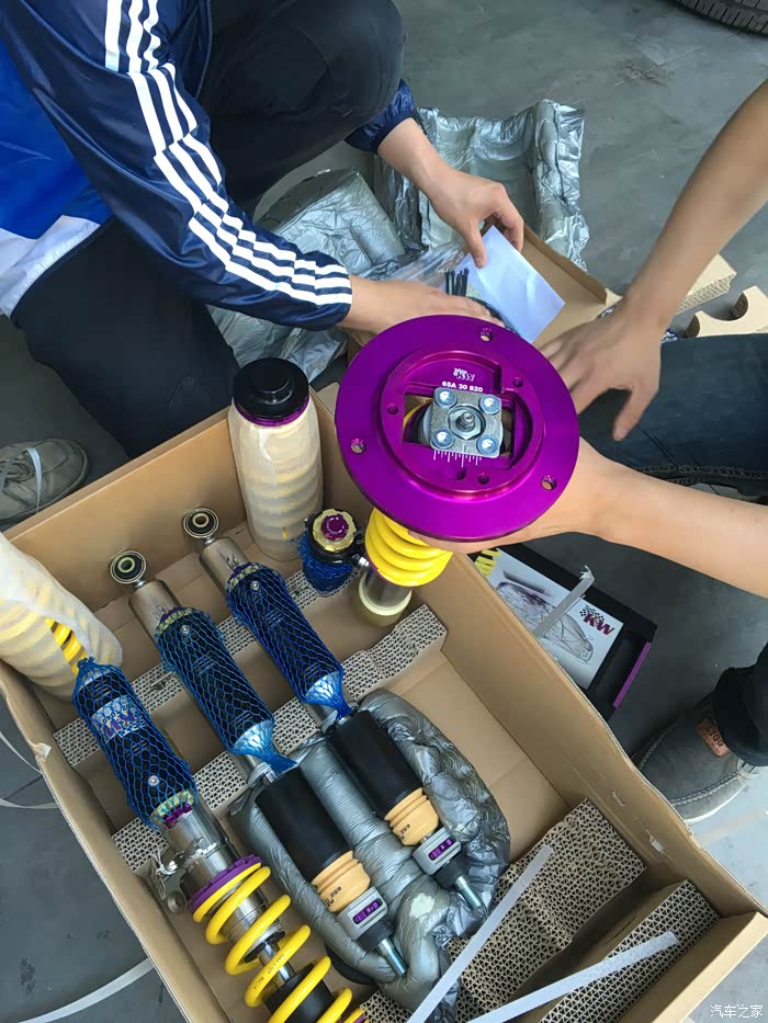 说说我直观的架势感受,车架有变硬,大概40%,整个底盘比较紧绷,原厂避震因为要考虑通过性的问题所以有点垃圾,形成太长了重心转移的时候有点晃,所以我直接换了一套3way的clubsport,也就是M4GTS上的升级版,M4GTS原配就是CLUBSPORT避震,但是不能调节阻尼和高低,而KWC CS可以 。CLUBSPORT一直有个问题就是巨低,但是3WAY的CLUBSPORT无论舒适性和运动性能上都秒杀了原厂避震,武汉车展的时候我装着CS从上海到武汉武汉到上海2000公里开了一个来回,非常舒适
