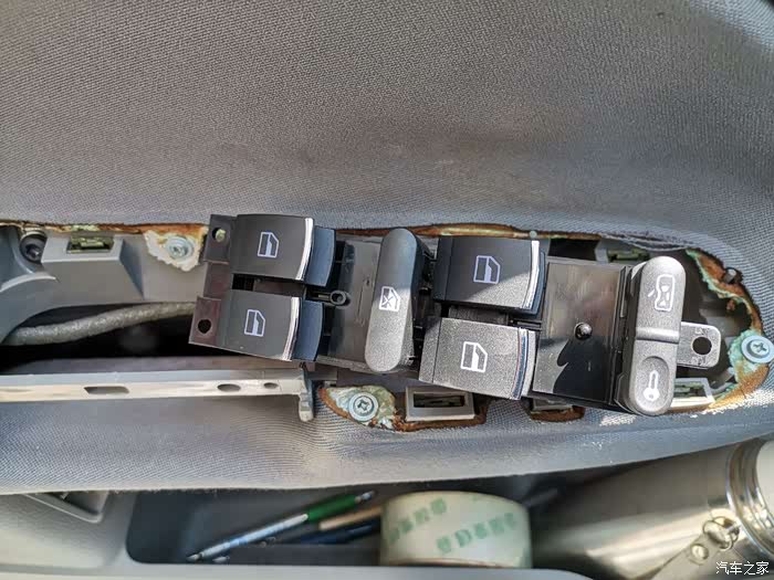 拧掉螺丝,把新的车窗升降器接上线,试了下,按了下,没有问题