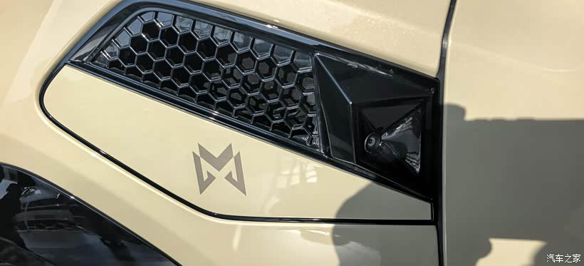 继续说猛士M817的前脸设计有城市版和越野版两种风格。城市版采用1.2米宽的蜂窝状进气格栅搭配粗壮镀铬饰条,LED灯带环绕发光,越野版则额外增加金属护板与外露式拖车钩,进气格栅为更通风的网格样式。两种版本均采用双层矩阵式镀铬格栅,格栅中央的猛士标志内置发光单元。现在这辆车更加的富有设计感,并且这种机甲风没有那种山寨感,是妥妥的有未来感觉的设计风格!