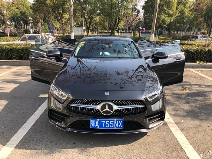 之前发过一次简短地提车作业,今天来个全面的。其实早些时候根本没有考虑过新CLS,官宣图出来的时候,算是也加入过吐槽大军,吐槽这一代的CLS是多么失败的作品,除了内饰,被吐的一无是处了??。从去年奔驰E coupe上市时就开始关注,因为只想购300黑色的,但因为国内大多都是200,白色,基本上只能先订车,中间是各种找车,交订金订车,换了好几家4s店,武汉的4s点基本上联系了一遍,真的是蛮波折,一直到提CLS头一周都还在考虑今年最后一批EC。其实也考虑过其它牌子,包括新A7,保时捷的Macan,以及宝马6GT,但奥迪完全打了一手烂牌,国外新A7都已经出现二手市场了,中国这边还在等待,截止发这个帖子前两个小时,奥迪4s销售电话我,他们店3.0新A7有实车到店,可以来店看看,现在订车最快3个月,至于2.0的新A7消息全无,就奥迪这种对待中国市场的态度,虽然喜欢,但直接否定了!至于宝马6系GT,因为之前家里就是一辆老五系,所以只是想单纯的换个牌子开,但宝马的操控的确很可以,就是内饰还有点差强人意。保时捷的新Macan,去逛了一下他们论坛,唉,保时捷对待国外国内完全不是一个态度,国内隐瞒减配,配置手册欺骗国内车主,现在很多车主都在投诉了,所以回头一看,好像就只有奔驰了,哈哈??。抱着这种心态和女朋友去了4s店,那是第一次看见CLS实车,心里第一感觉就是靠,这车好犀利,好帅啊!然后又在网上找了蛮多车展的照片,原来石墨灰可以这么帅,哈哈,先上个我网上看到的图片