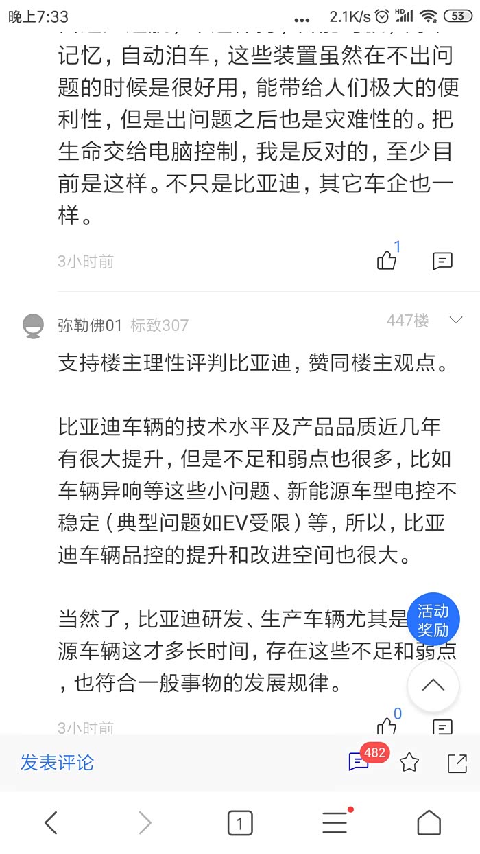 他又不是车黑,我肯定信啊,反而你信什么我看起来很有趣,先做个诚实度测试,你认为比亚迪的电控是非常稳定,还是有时候不稳定,或者是很不稳定?
