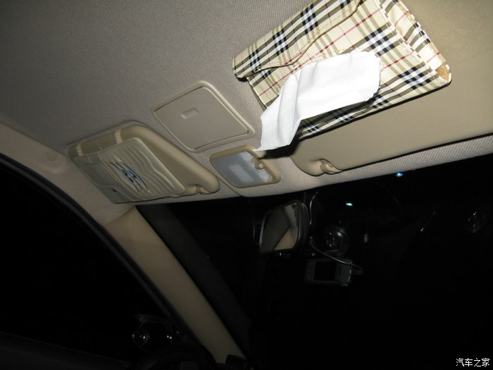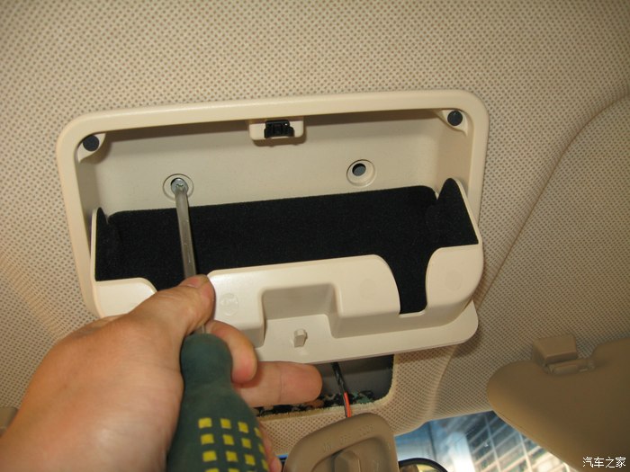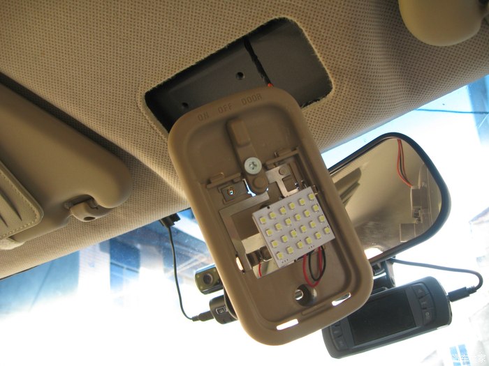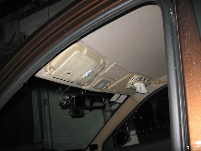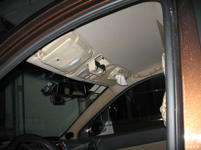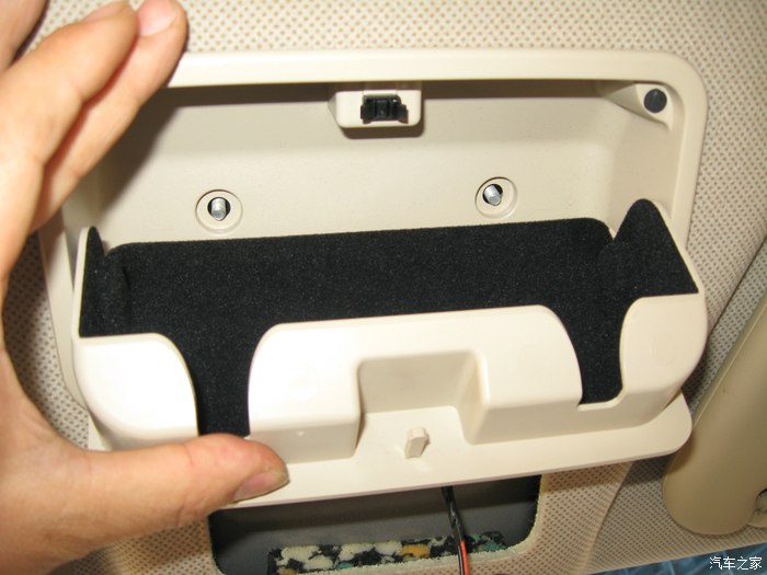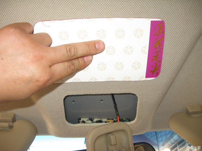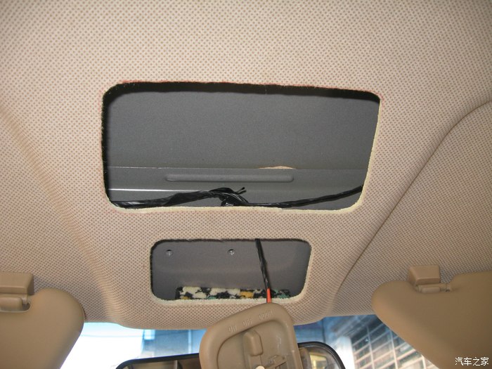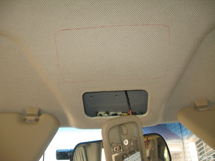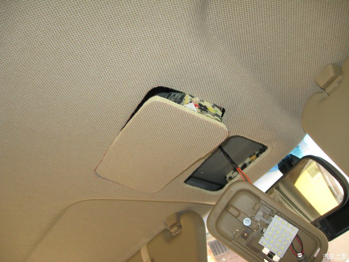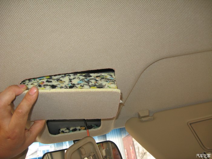 把下下来的隔音材料再塞进里面,然后把车顶灯和眼镜盒安上去,下面是安装效果图