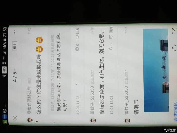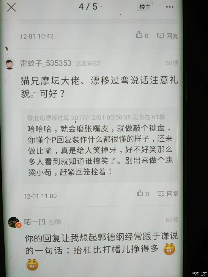 我是说有个漂移过弯的车友在坛子里与你互怼。我建议他说话客气点、
