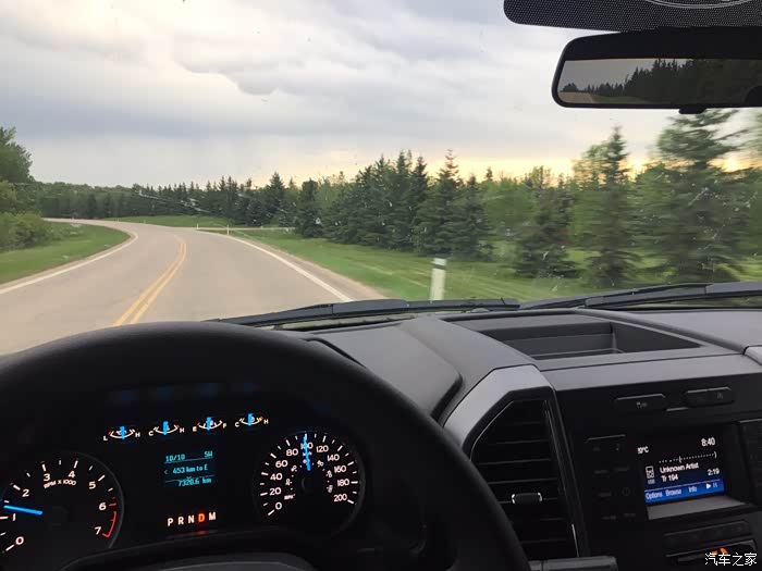 2. 隔音和舒适度。这也是我没有想到的地方,非常惊喜的发现F150的隔音比5系还要好上一些,至少从主观感受是这样。发动机和路噪基本上都能隔绝在车外,时速在120左右风噪也很小,对于这么大块头的皮卡来说我觉得特别难得。尤其是在北美很多路况不好的高速上,当5系巨大的胎噪和悬挂咚咚的声音传进车内时,皮卡却可以轻描淡写的飞驰过颠簸的路面,只有底盘轻微的响声传进车内,出色的隔音和舒适度让我印象非常深刻。市区的话舒适度肯定就赶不上轿车了,但是舒适度也在不错的范围内。