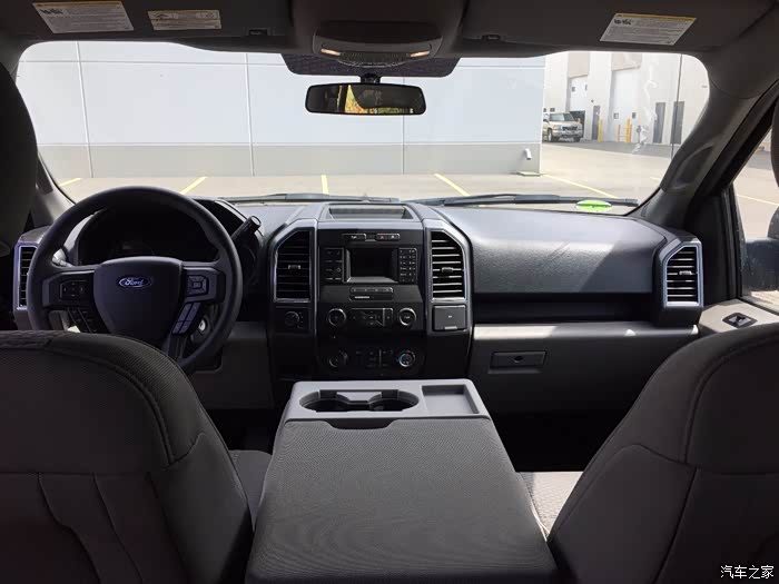 首先介绍一下,这台F150是2017款,和之前车款最大的不同在于换装了一台10速自动变速箱,搭配的3.5T ECOBOOST涡轮增压发动机输出也有了一些提升。具体来说,这台车是全系次低配,熟悉平行进口车的朋友也应该知道这个XLT型号。客舱形式是super crew,是可选的最大乘客空间。后面的货斗则是短斗。配置方面因为是租车行给的代步车,基本上都只有最基本的配备。