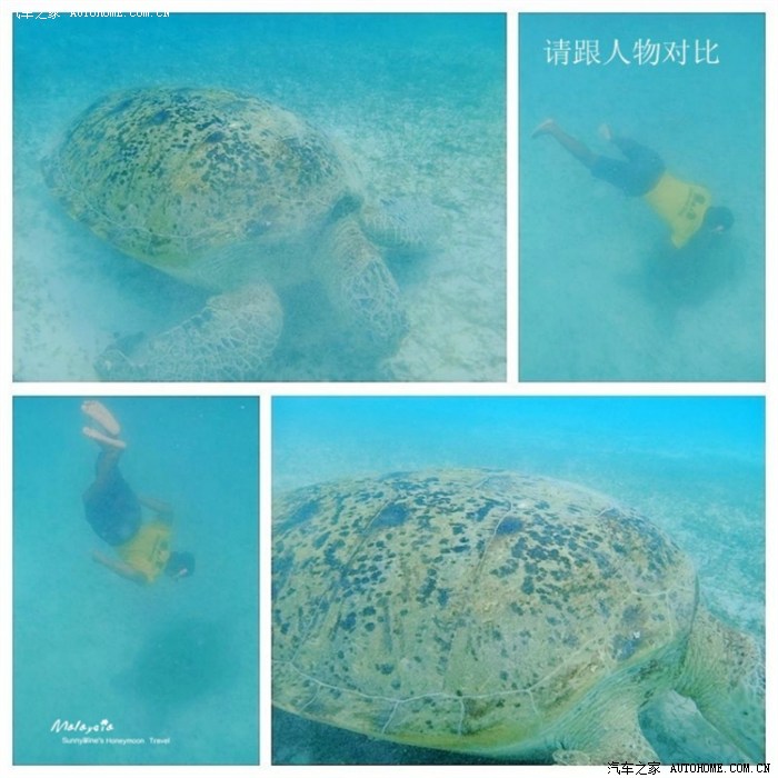 水下之旅,全靠船老大小黑,带着我们看的,毕竟领导还是新手.先去的海龟点,小黑会说海龟的中文,全程就这2个中文字,其他都靠英语交流..海龟点就在号称住宿最好的PIR的沙滩外面,也是大岛的码头那..我当时很怀疑这里怎么有海龟?小黑很自信的说有的...开着船找了2分钟就找到了...海面看下去就4-5米深下面有很大的黑影...果然是大海龟... 他都是直接扎猛子下去的..让他帮我给海龟拍照..拍了2张后.他跟我说了1串英语...我也没听怎么仔细就说OK OK...他把相机还我后又潜下去..直接把海龟给搬上来了...额.. 那海龟得有1米吧...老大了...摸着很爽就摸了一下.海龟在海面上深深吸了2口气..又下去了..恩..满足了...换点