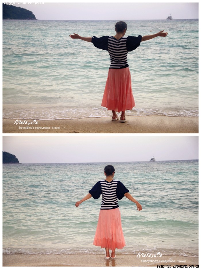 在离开停泊岛前拍了一个小时左右人物照,当时涨潮了,天空不大理想,不过海水很清澈