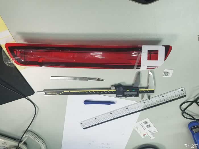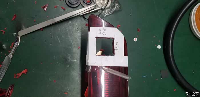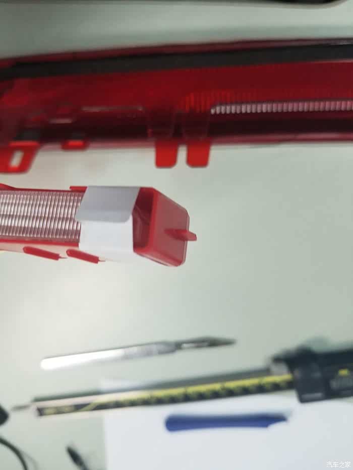 17年10月28日牵手翼博至今整整4个月了,看着各位大神的改装神技,我也终于开始下手改装后视镜,可能跟大家想法不一样吧,我就是单纯的想要后视镜,要求不高,后摄像头必须是1080P,光圈越小越好,征求过几个老手司机朋友,他们给我的建议,不要弄花里胡哨的功能,开车时专心开车,后视镜就是帮你减少安全事故的,什么语音,4G云平台,导航,视频,安卓程序,等等稀奇古怪的功能,只会让你在开车的途中手忙脚乱,更不安全,想想也是,1.5自带倒车后视,自带语音,导航也是自带(自从把我倒错一次路之后,在没用过自带导航),靠谱的还是手机高德,只需要一个前后摄像头的行车记录仪即可,本来购车时,4S店送的有个记录仪的,在加装个,就2个了,在网上找了整整2个多月,终于找到我满意的前、后1080P,全屏流媒体,前1.8,后2.0光圈(后摄最小光圈了),手势感应,小博的后面真的是没地方装后摄像头,只好装在自带的倒车摄像头旁,使用几天后发现不妙,特别是在晚上的时候,后车的远近光灯,都会直直的照射在牌照上的摄像头上,导致后视镜一片高亮空白,看不清后面的路,很危险,于是就想把后视镜摄像头安装在高的位置,这样后面来车的灯光就不会照到摄像头了,找来找去,只有在刹车高位灯上的左边有个3公分宽的盲区,比较了一下,挤一挤在不损坏原来高位灯灯泡电路板的情况下能装下这个摄像头,要很小心,找了几家4S店,都不敢动手,说位置太小了,按装不下,没办法,这是逼着我自己动手啊,第一次是用电烙铁打孔,失败了,那个红色灯壳太硬了,毛边没发刮平滑,重新花了95快大洋,购买了一个高位灯二次制作,原车的被我废掉了,于是开始淘制作工具,锯片买的16-50型号的,买回来后才发现有点大,要是再小一点就完美了,高位灯比较好卸载,打开门,扣掉高位灯对立位置的2个橡皮垫子,用平口起子,把那个卡簧往上挑掉就可以了,穿线比较麻烦,要把车门里面那个塑料凹下去的装饰部分取下来,从与车后门交接处的线孔穿过来,高位灯取下,高位灯的电线捆绑上另一根长线,要捆紧啊,用胶带缠紧,一会电线来回拉送摄像头线的时候,要是脱线了,那就糟糕了,后尾灯线就回不去了,抓住新捆绑的线往回送,然后在后门电线口,往回拉高位灯的线,看到捆绑的新线后,在捆绑上后摄像头的电线,然后抓住新捆绑的线,把高位灯的接线拉回原处,后摄像头的线也就一起带出来了,插上后摄像头,插上高位灯的线,插上边上那个传感器的线,把高位灯装回远处。就结束了,后尾灯下面是制作过程图片: