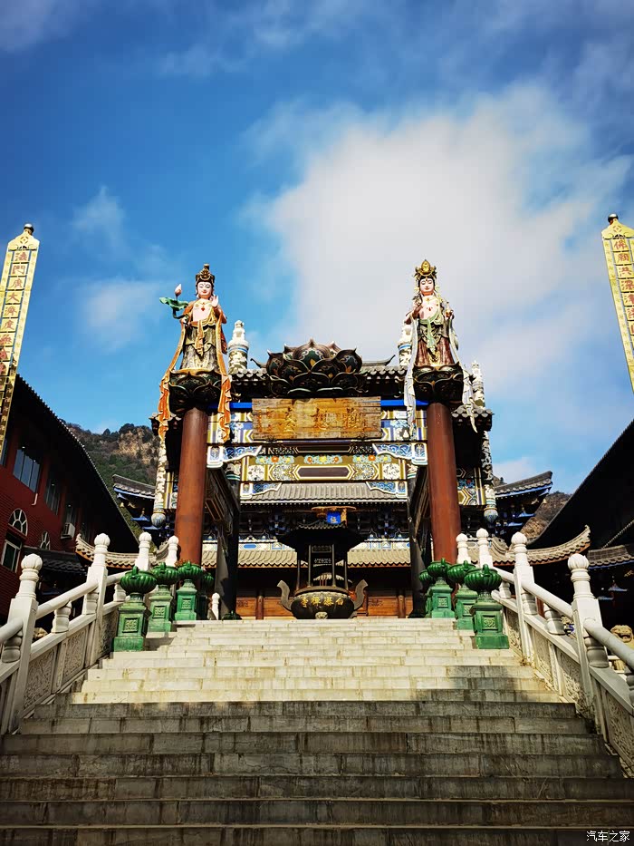 这次忙里偷闲去了一趟白瀑寺,那天正好天空湛蓝,阳光明媚,我们自然心情大好,兴趣昂然,一大早就驾车奔向门头沟,前往白瀑寺的途中,路面有些窄,坡度有些大,可能正好遇见节日吧,每个拐弯处都有人提示,但仍不敢大意,自驾而来这里要格外当心,越野全制式四驱SUV除外。很快就来到了永定河畔,在门头沟妙峰山镇早市买了些素食,主要是怕白瀑寺斋饭不够吃而预备的,之后便沿着109国道、永定河畔一路前行。