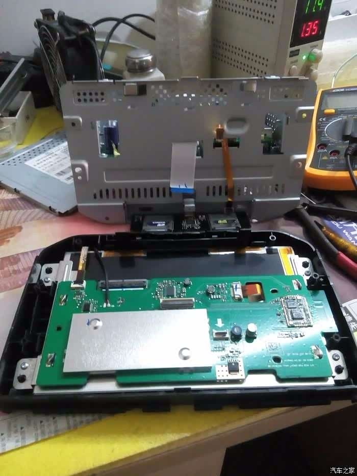 拧掉4个大螺丝,拔掉导航屁股后面的线(记得拍照,免得装上去时,不记得顺序了)