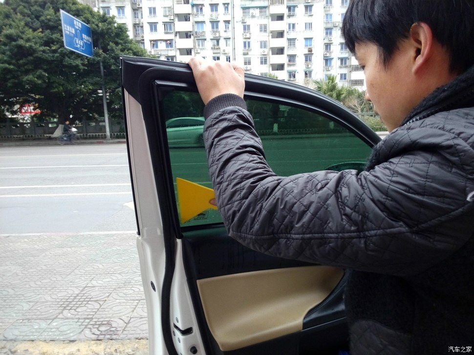 开始美容了先把前挡铺开我选的前挡是金属膜这个隔热好,隐蔽性也好看施工后的效果完事才知道
