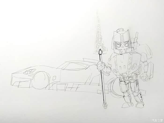 开始画汽车人,我画画,不自觉的就喜欢画出体积感。
