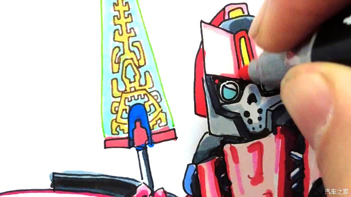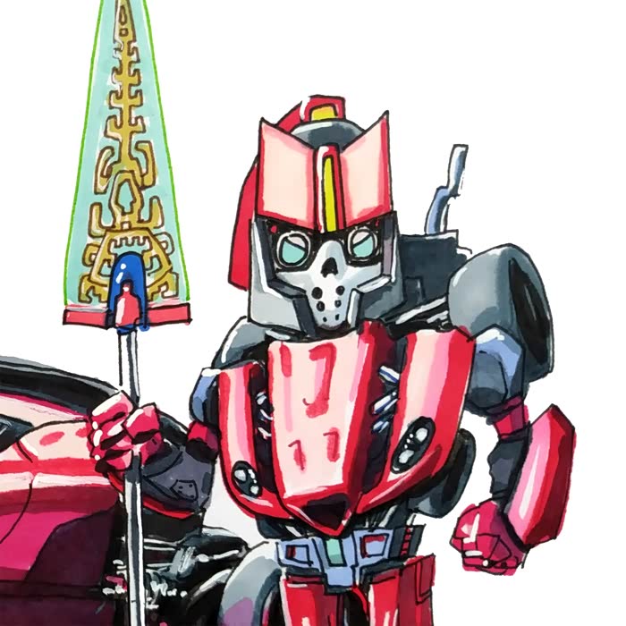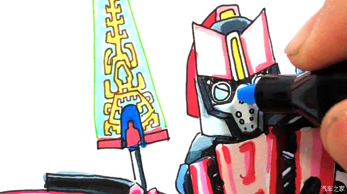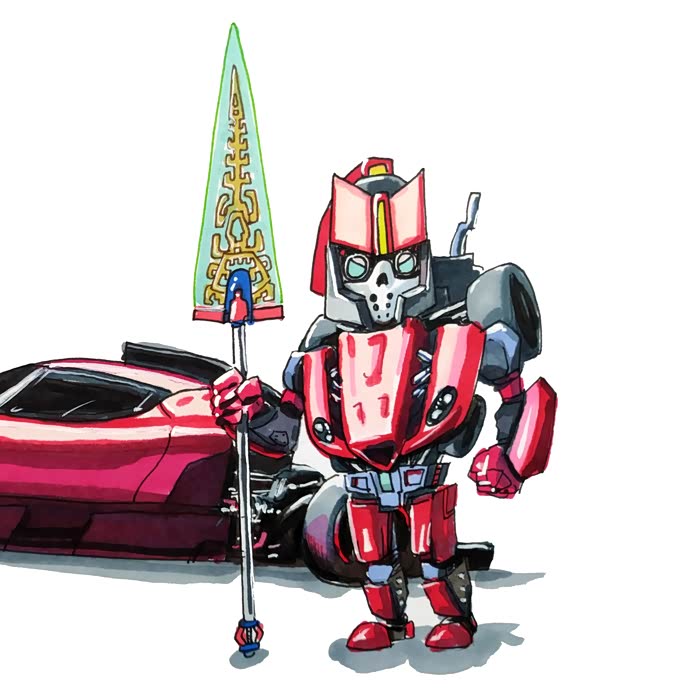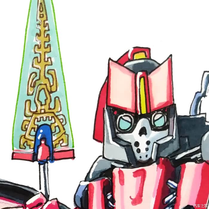看看画的Q版汽车人,结合了中国古代汉代铠甲和周朝青铜礼器元素。之前看变形金刚,我发现大部分角色都是带着头盔的造型,但是他的造型并非中国风格,我酷爱秦汉文化,想把我热爱的中国古代经典元素,加入到我的画中。