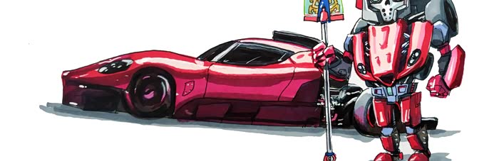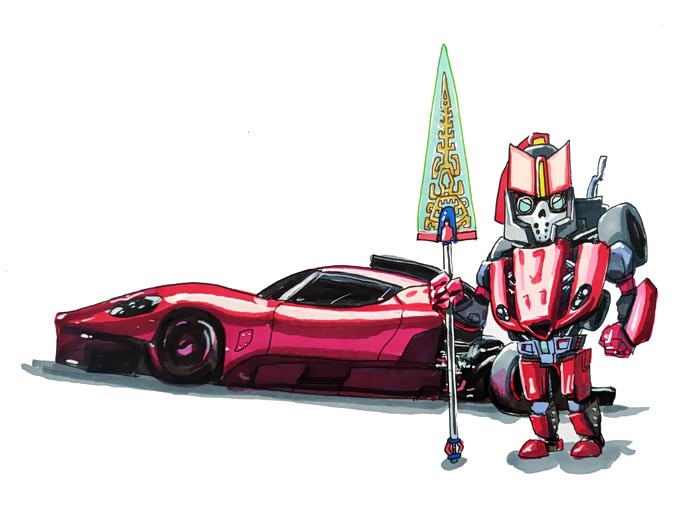 原车来自【PSC車舍】建模改车设计的,阿尔法·罗密欧4C方程式!之前画了写实版,现在是3次创作,手绘Q版汽车人。加入了中国汉代铠甲和周朝青铜礼器元素。