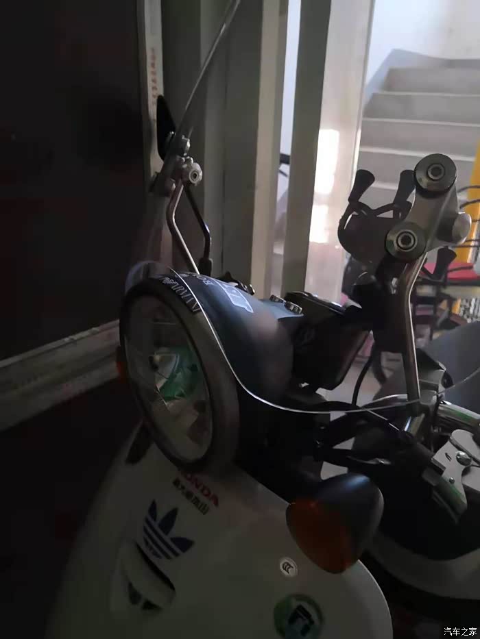 同款白色 嘿嘿 很多细节咱们都一样 比如风挡 脚垫 前面牌照架的螺丝 哈哈