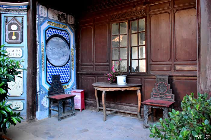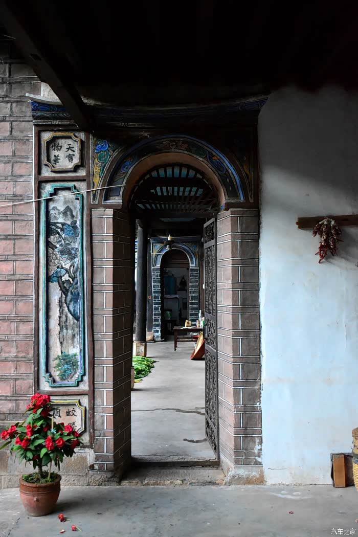 春"的布局,东西耳房、厅房同南面的主照壁构成南院的"三坊一照壁",主房、东西厢房、大门和角楼则构成北院的"四合五天井"。打开厚重大门,映入眼帘的是四个刻在大理石方框的大字"世守***",显示了主人虔诚的信仰。