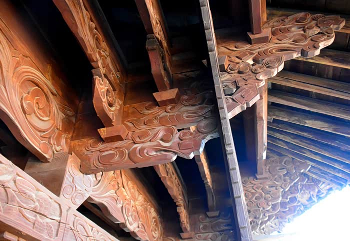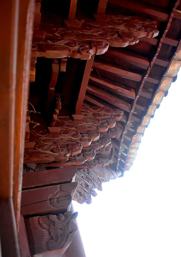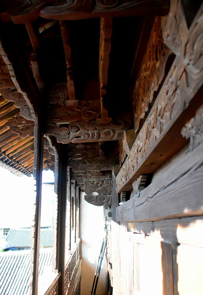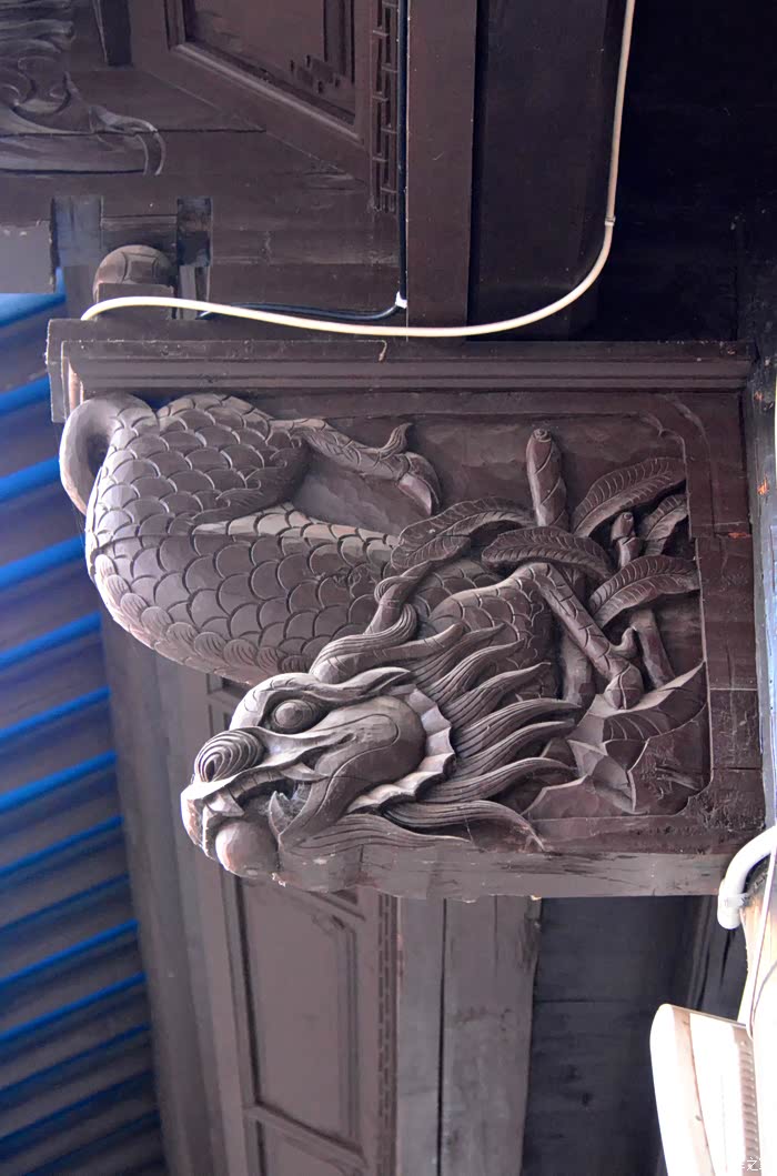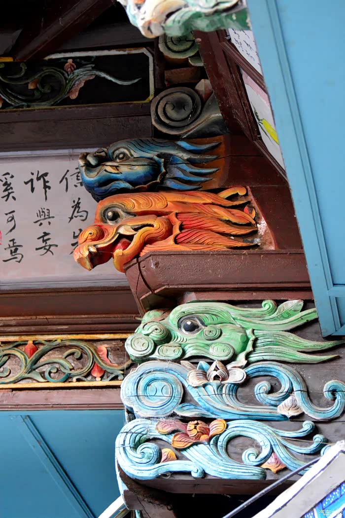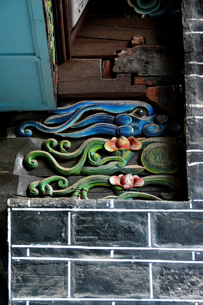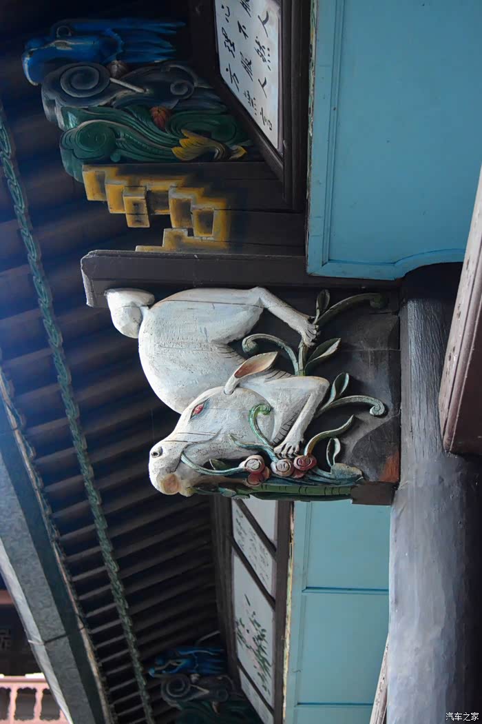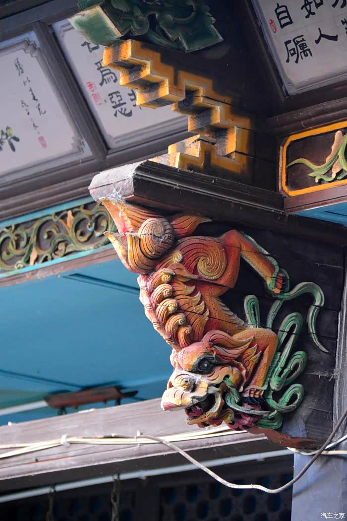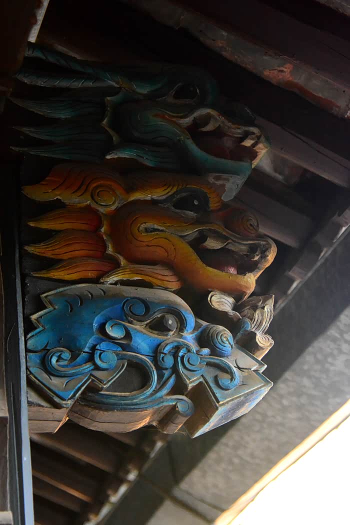 只抬头看时,你会觉这些木雕的梁头,柱头上雕刻的神兽得都一样,但只要你再仔细看,每一组都不同、雕刻的相当精致、色彩很漂亮、一般圆雕作品上色大多是单色,马如骐大院建筑的这些梁头、柱头上雕刻的神兽、栩栩如生、惟妙惟肖、色彩用得很艳丽、而且还运用了原色的过度和渐变、使这些木雕神兽更具立体感、层次感、这个是在别的地方没见过的。