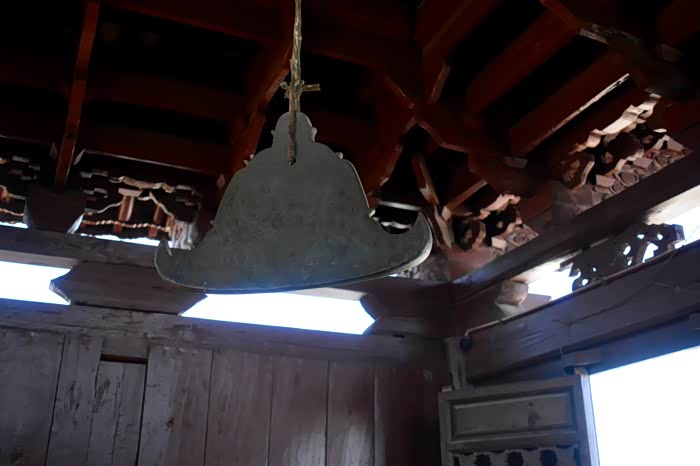 三楼的铜钟(别小看只是一小片,敲一下,声音很洪亮、整个村都能听到)