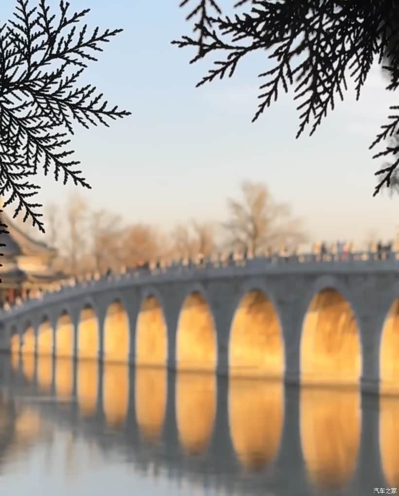 跟着车主来一场说走就走的旅行,自驾车出游北京颐和园欣赏十七孔桥金光穿洞的美景。