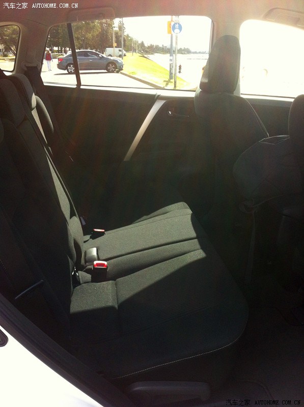 2、后排和后备箱空间大。由于新款把备胎移到了后备箱下面,似乎是为了不影响离地间隙,就把装备胎的空间抬高,导致后备箱里面的盖板凸起来,个人感觉很丑陋而且浪费了空间,在澳洲的很多现车后备箱都是这样。因此我们订的是spacesaver的样式,没有要全尺寸备胎换得了整个后备箱是平的那种,空间增大。看车时和同级别的CX5等车型比较了下,新RAV4的空间是最满意的。
