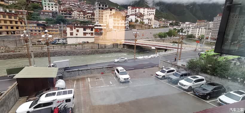 到达白玉县(海拔3050米)已是晚上八点多了,下着雨,入住诺布尔岭酒店,停车场蛮大的,真是充实的一天。下面的图片是第二天早上拍的,酒店前方的那条河叫欧曲。
