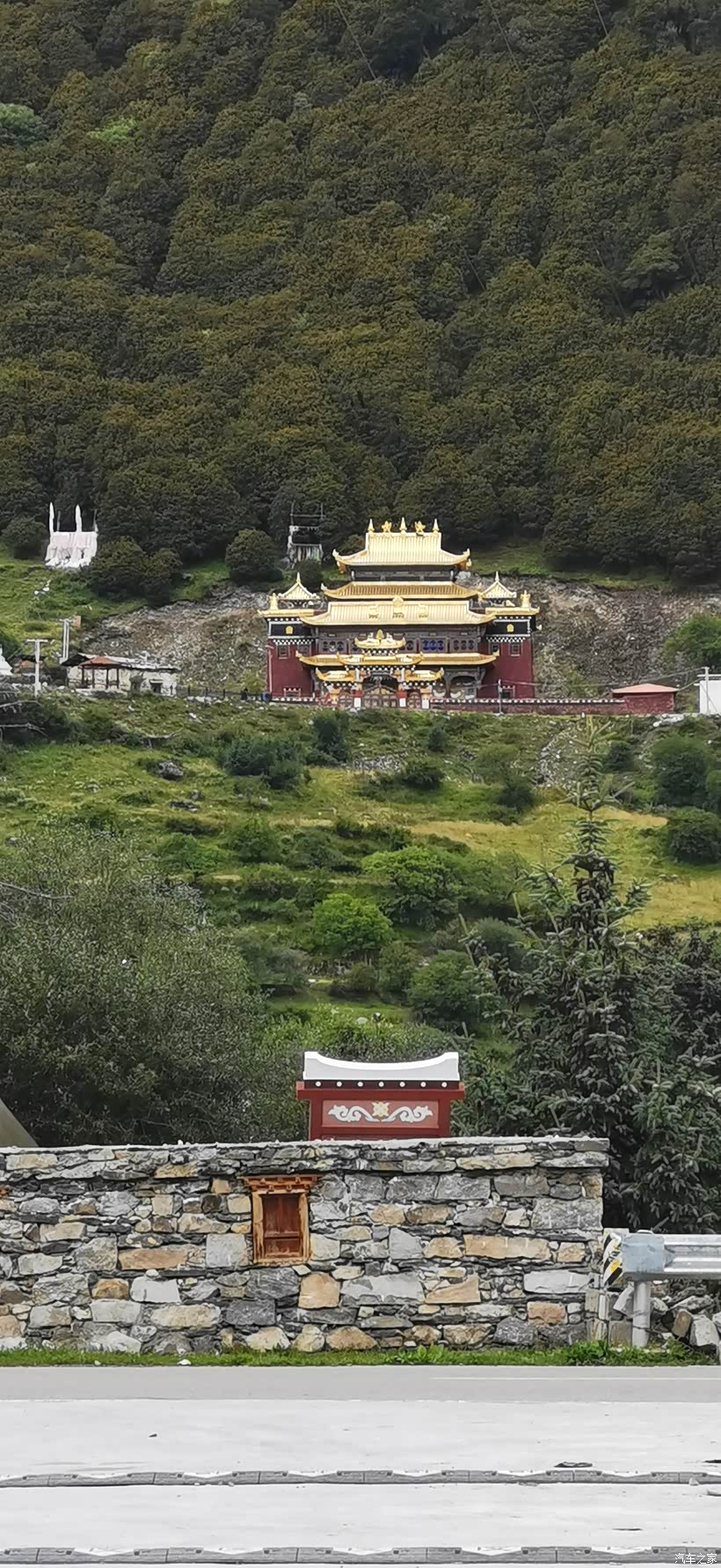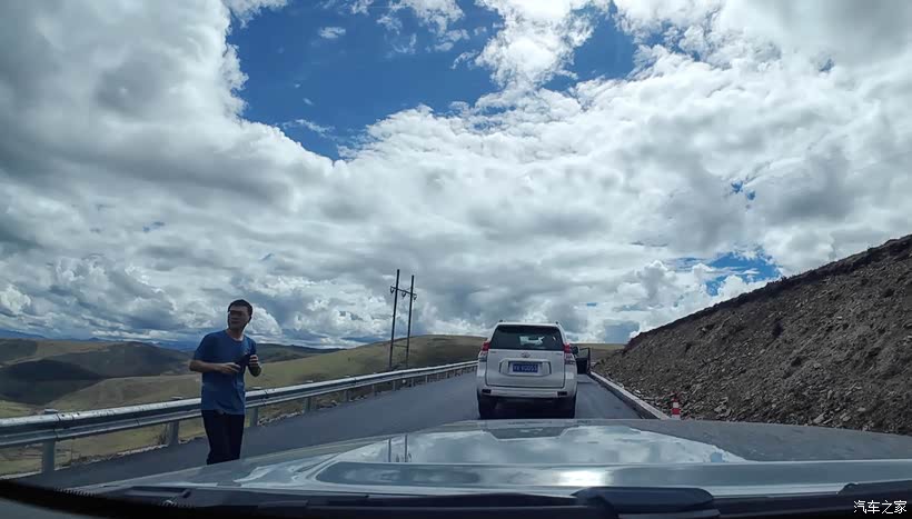 离开亚青寺继续赶路,前往白玉县,刚好遇上修路,只能排除等候,这里海拔四千多米,此时已下午四点多,放行时间为18:00,安全起见,只能后撤到四千米以下的地方休息等待。今天赶夜路已不可避免。