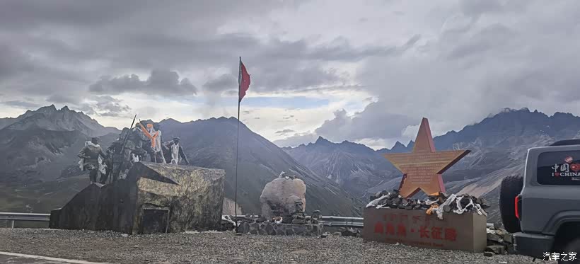 离开神木垒不久开始翻越夹金山,山顶浓雾,开启前后雾灯、双闪,喇叭提醒,缓行,垭口海拔4114米。1935年6月12日,中国工农红军红一方面军翻越夹金山并与红四方面军在达维会师。
