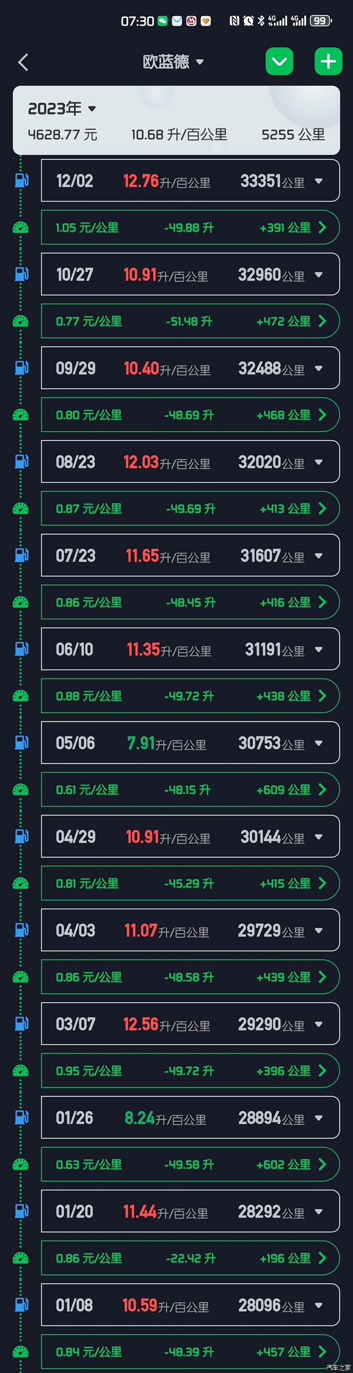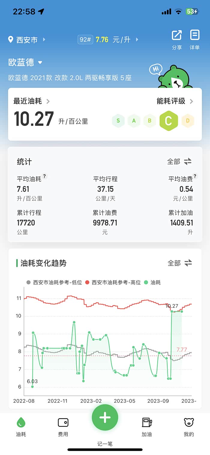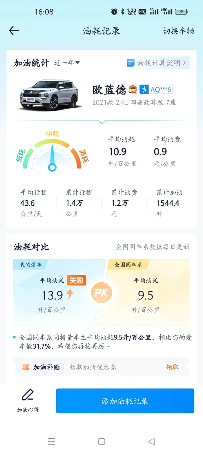 咱俩用一样的软件。我是16年第一批国产,跑了13万公里,统计的油耗8.00