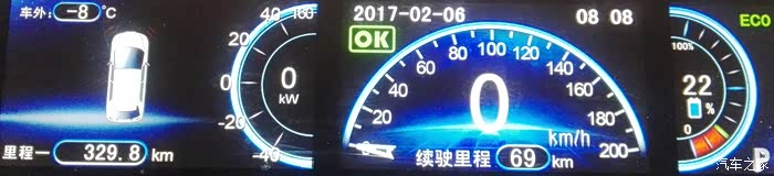 一路上,开始温度都在零度以上。临近辽宁,气温骤降到零度左右。好在路程不长,仅有319.8公里,用了78%的电。