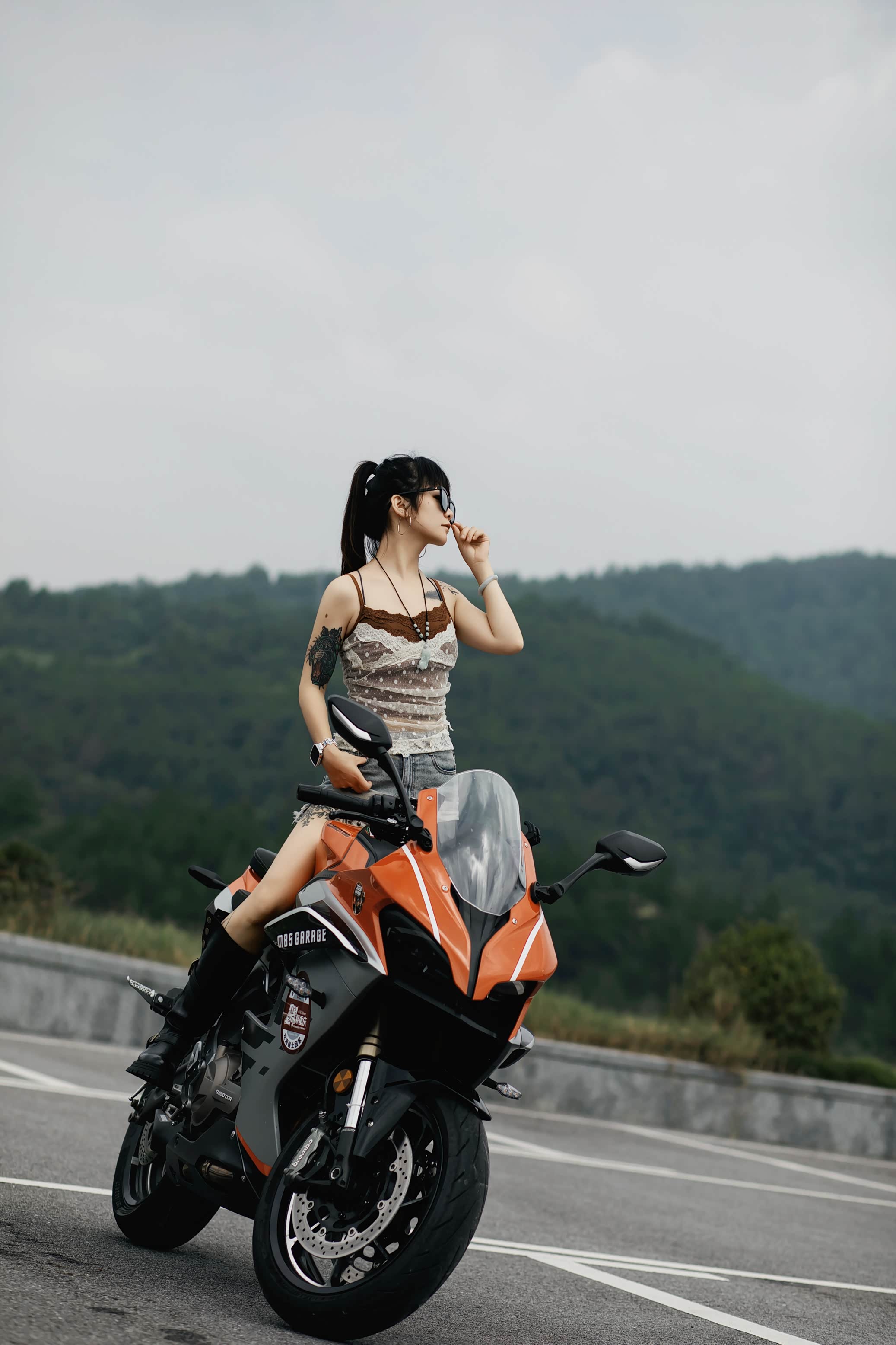 车轮卷起尘埃,后视镜里的世界越来越小,而她的影子在柏油路上拉得很长,像一道不肯被定义的闪电。当速度冲破桎梏,风灌满衣袖的刹那,才懂所谓自由,从不是裙摆的摇曳,是双手紧握车把时,心跳与引擎同频的震颤。